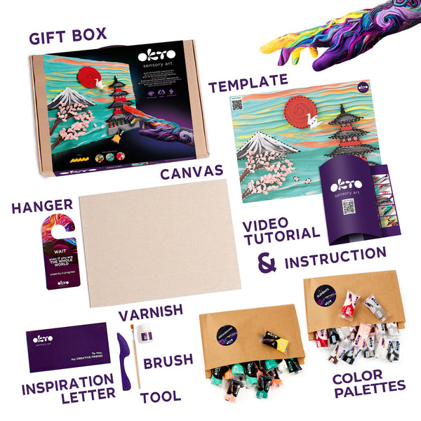 Met de OKTO "Japan" set betreed je deze stilte. Niet voor het resultaat, maar gewoon om hier te zijn. Met je vingers, je zintuigen, je aanraking. Je creëert deze wereld zelf – vloeiend, multidimensionaal, harmonieus.