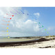 Het frame heeft elastieken in de rondhouten, net als een tentstok, zodat ze op hun plaats springen en blijven zitten, zodat de montage een makkie wordt. Wordt geleverd met dubbele streamerstaarten en hoogwaardige gevlochten vlieglijn op een eenvoudig te gebruiken hoepelwinder.