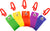 Set van 5 staarten in verschillende kleuren (rood, geel, groen, blauw, paars).