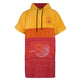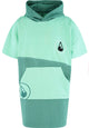 De gevoerde capuchon met kraag en koord houd je heerlijk warm, vooral als je haar nat is. Zo ben je goed beschermd tegen de elementen. Met de twee grote zakken aan de voorkant heb je genoeg ruimte voor spullen zoals shampoo, een borstel of je koude handen. Door de kleurencombinatie en de bedrukking op de zakken is de poncho een echte eyecatcher.