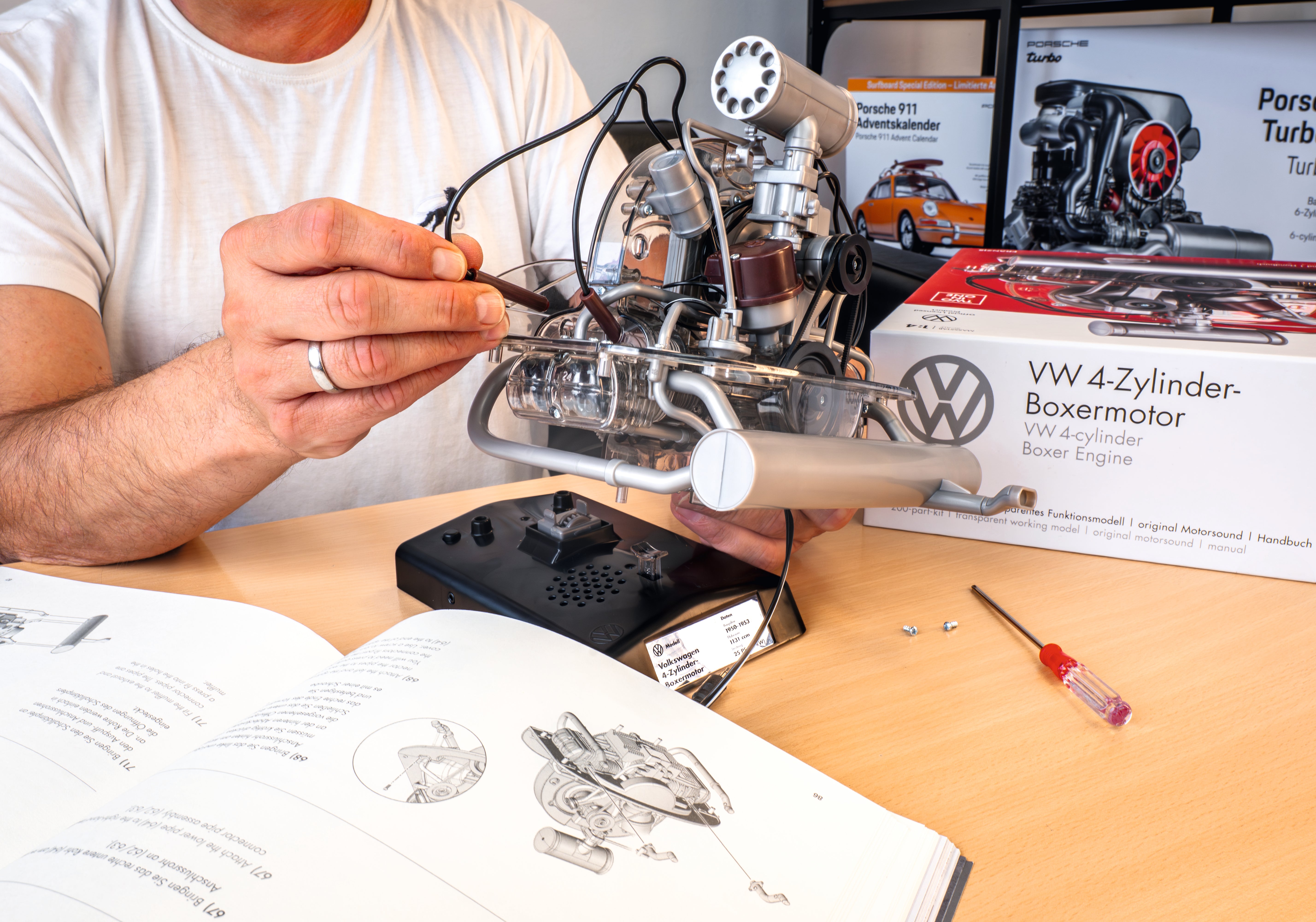 Met dit pakket geniet u van een transparant functioneel model van de legendarische VW viercilinder boxermotor, die tot op de dag van vandaag zijn talloze fans wereldwijd fascineert. Leuke technologie voor u en uw hele gezin!