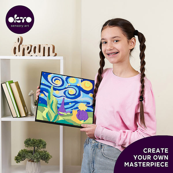 Een prachtig cadeau voor feestdagen en doordeweekse dagen voor ieder kind. Een set voor het maken van een afbeelding op nummer met luchtklei is een tijd voor een gemakkelijke start in de wereld van creativiteit. Eenvoudige kleurplots zijn gemakkelijk voor de vingers van kinderen om mee te werken. De set bevat: een stevige basis in een frame van 29*29 cm, een tas met gekleurde stokjes air clay, een hulpmiddel om met details te werken en alles wat je nodig hebt om een creatieve sfeer te creëren. Kunstklei helpt de aandacht en interesse van kinderen in het werk vast te houden. De afgedrukte omtrek van de tekening met kleurmarkeringen helpt u zonder veel moeite een prachtig product te creëren.