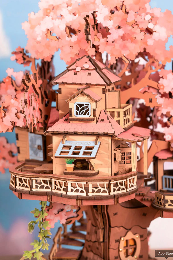 Keer terug naar de zorgeloze dagen van je kindertijd, toen je fantasie de vrije loop had, bomen om in te klimmen waren en oude banden de beste schommels vormden – toen er gelachen werd en vrienden eindeloze avonturen beleefden. Je vindt dit alles en meer in het Rolife Sakura Tree House, een magnifiek toevluchtsoord gebouwd rond een robuuste kersenbloesem in een vredig bos. Dit charmante toevluchtsoord met twee verdiepingen beschikt over luifelramen, een gezellige schommel, volop zitplaatsen en een wenteltrap die zich om de stam van de boom slingert. Een omlopend balkon biedt een perfect uitzicht, terwijl een windvaan het dak bekroont. Een houten lift, aangedreven door een katrol, vervoert kleine bewoners en schatten tussen de verdiepingen. Er is ruimte voor iedereen en er zijn zelfs verborgen ruimtes om te ontdekken.